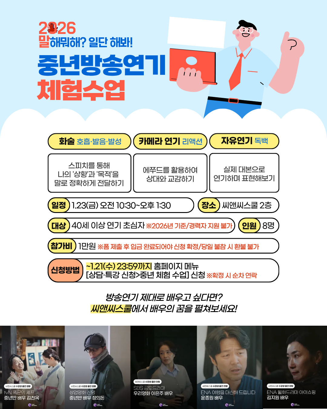 씨앤씨스쿨 중년 연기반에서 배우의 꿈, 이뤄보세요!