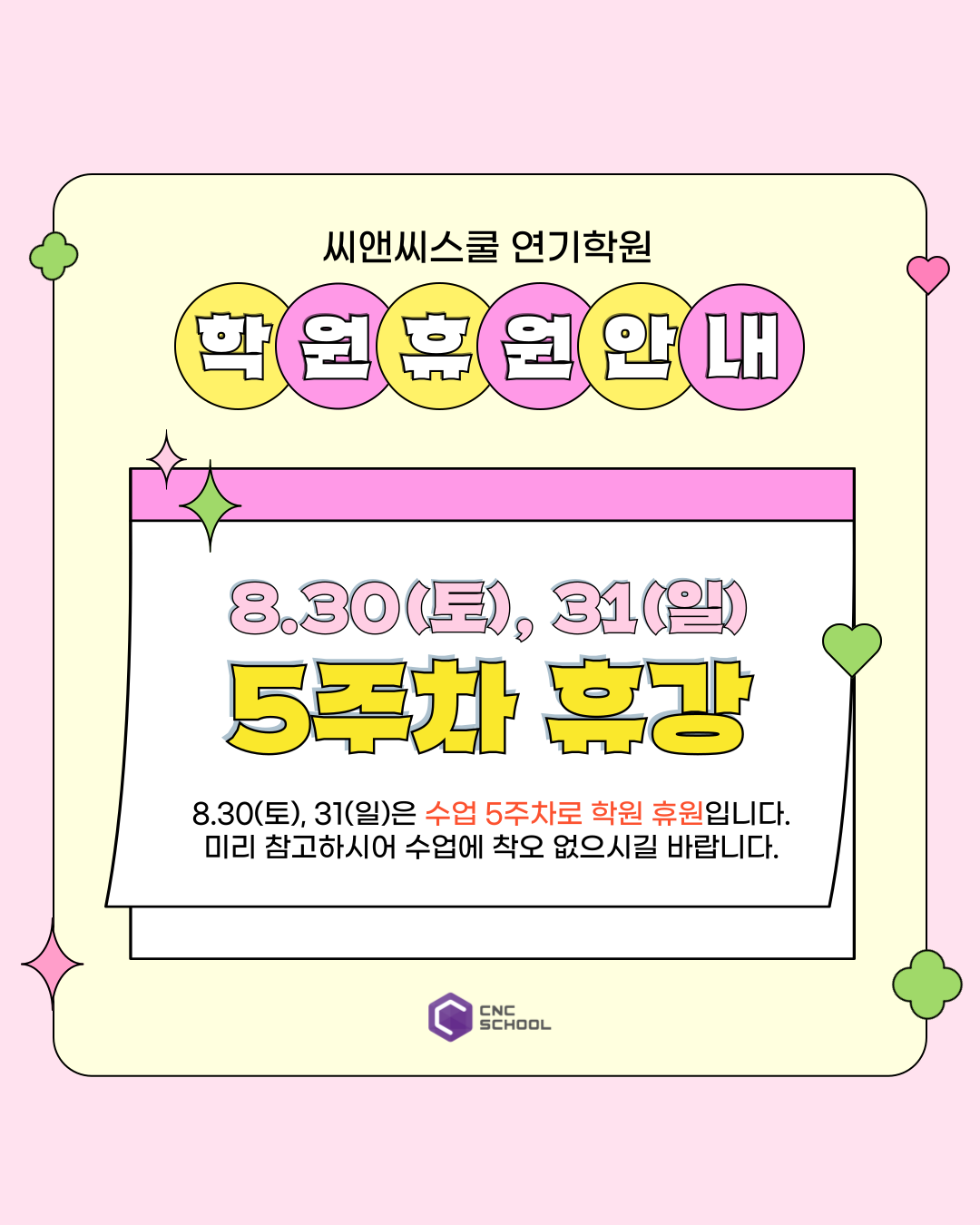 씨앤씨스쿨|8월 휴원 안내