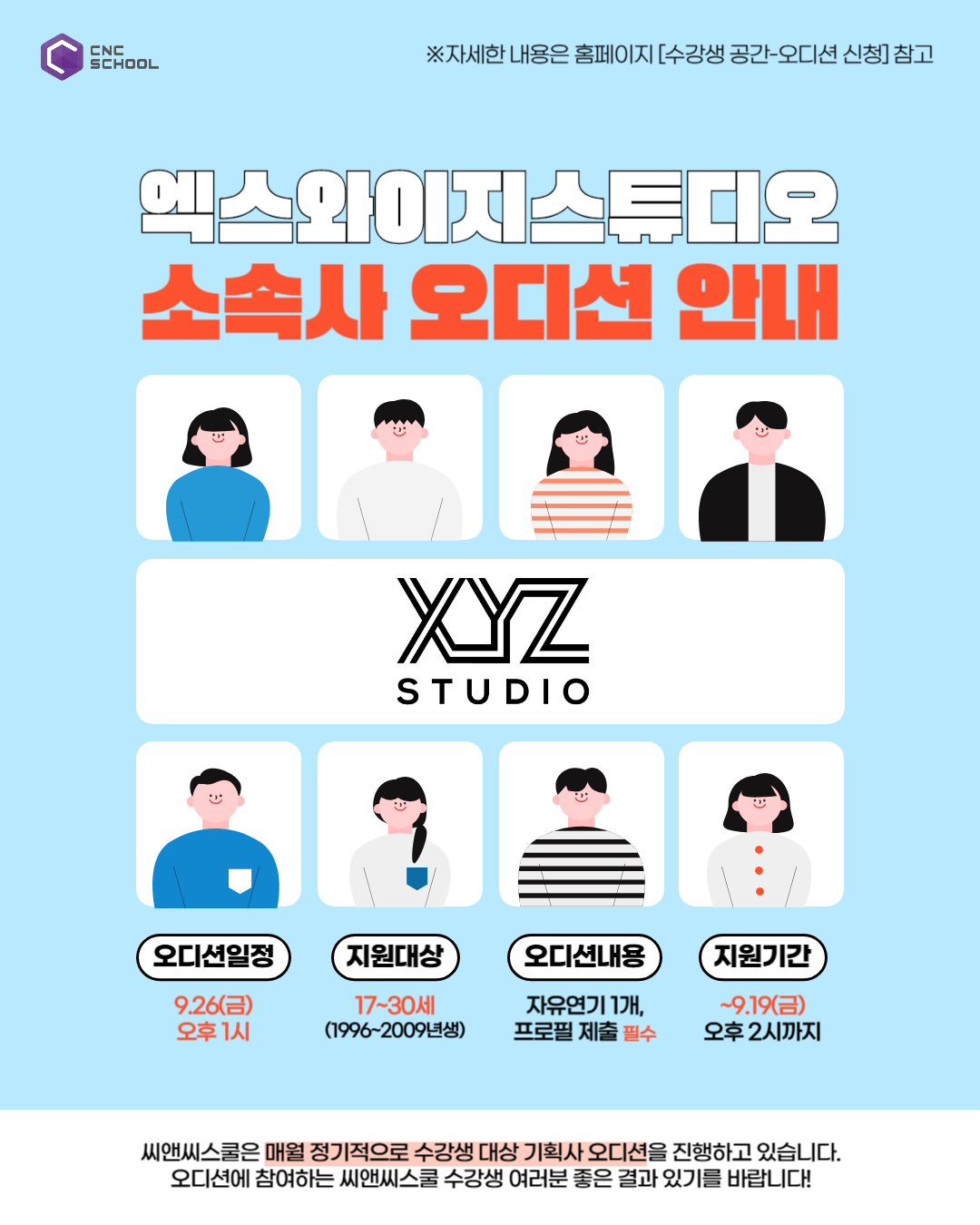 🚨씨앤씨스쿨 엑스와이지스튜디오 소속사오디션 안내🚨