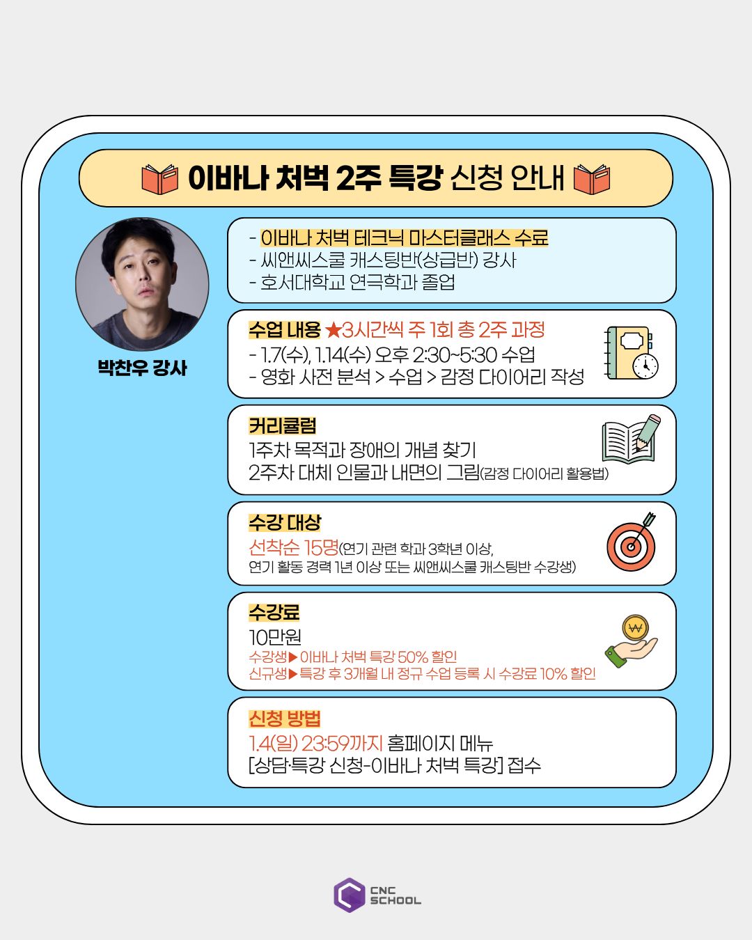 연기 활동 경력 1년 이상 또는 씨앤씨스쿨 캐스팅반 수강생)